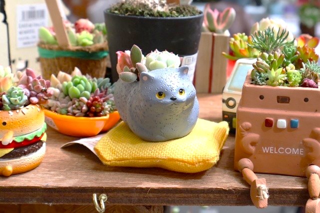 可愛らしい器に植えられた多肉植物。