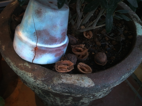 株下にくるみの殻を