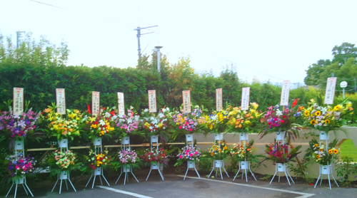 運ばれたスタンド花ずらり。
