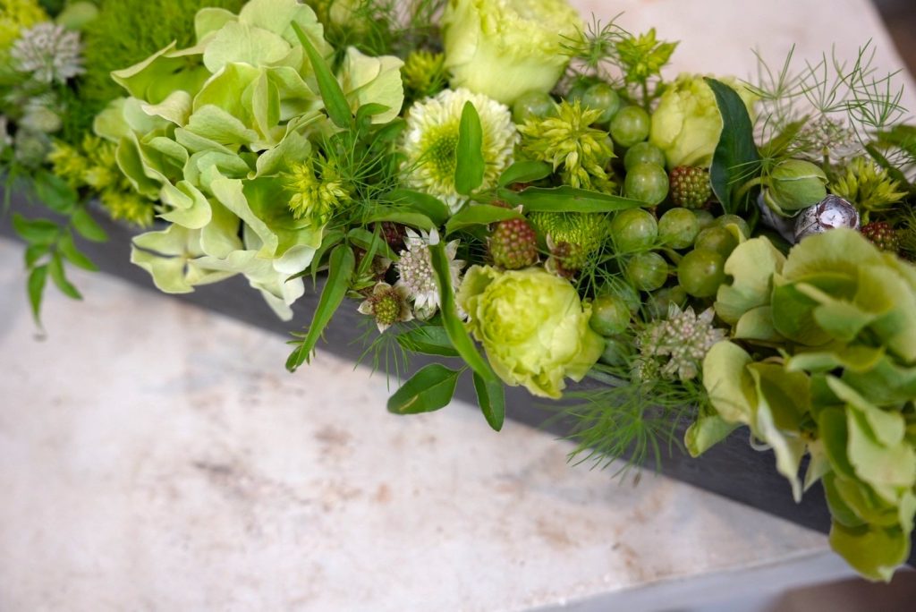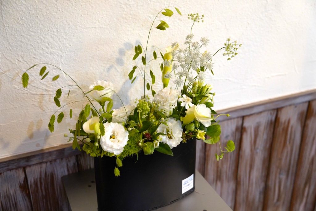 アレンジメントを並べた日