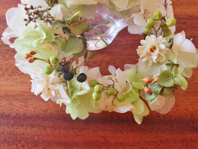 いただいたお花をドライにして、リースにしました。