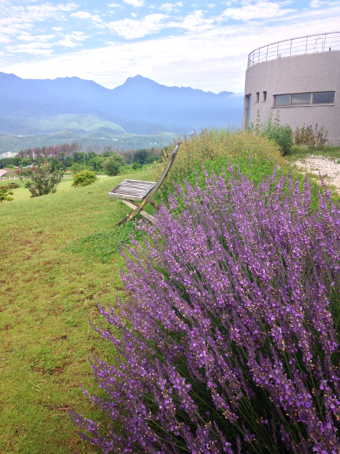 クララ館のラベンダーと夕焼け。