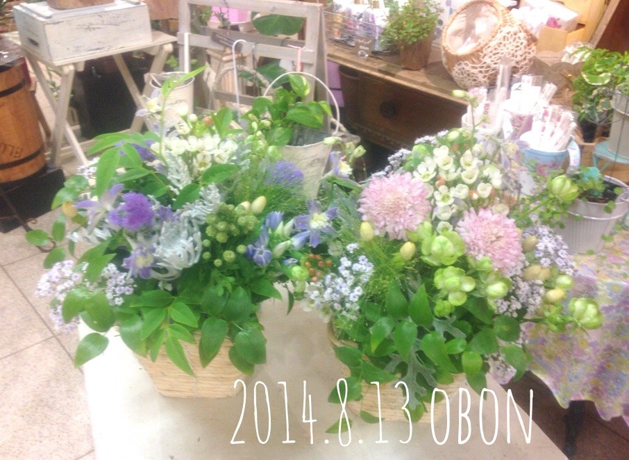 お盆に優しい雰囲気の花を。