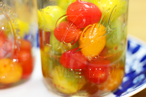 ④トマトを保存瓶に入れ、プチトマト30個に対し