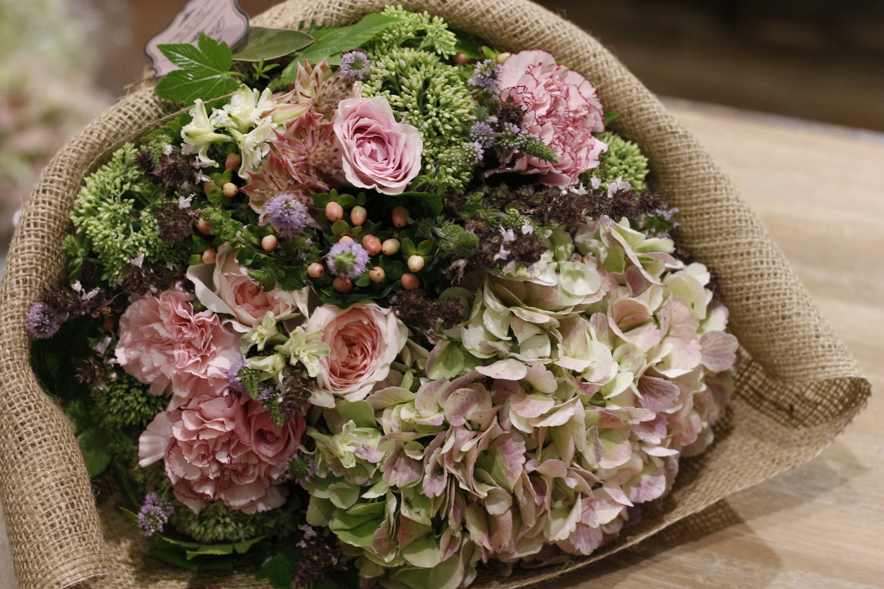 優しい色合いの花束ができました。